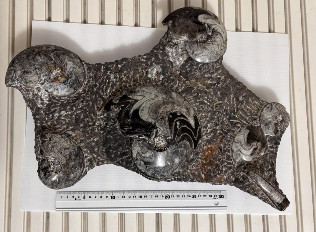 | アンモナイト皿 | オルソセラス 直角貝 皿 | 海洋化石 皿 |