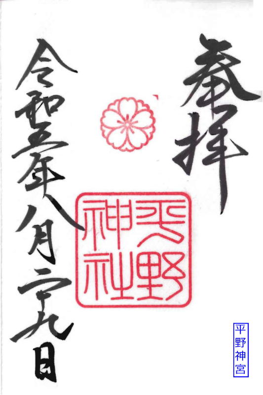 | 平野神社-裏 | 平野神社−御朱印 | 文子天満宮 |